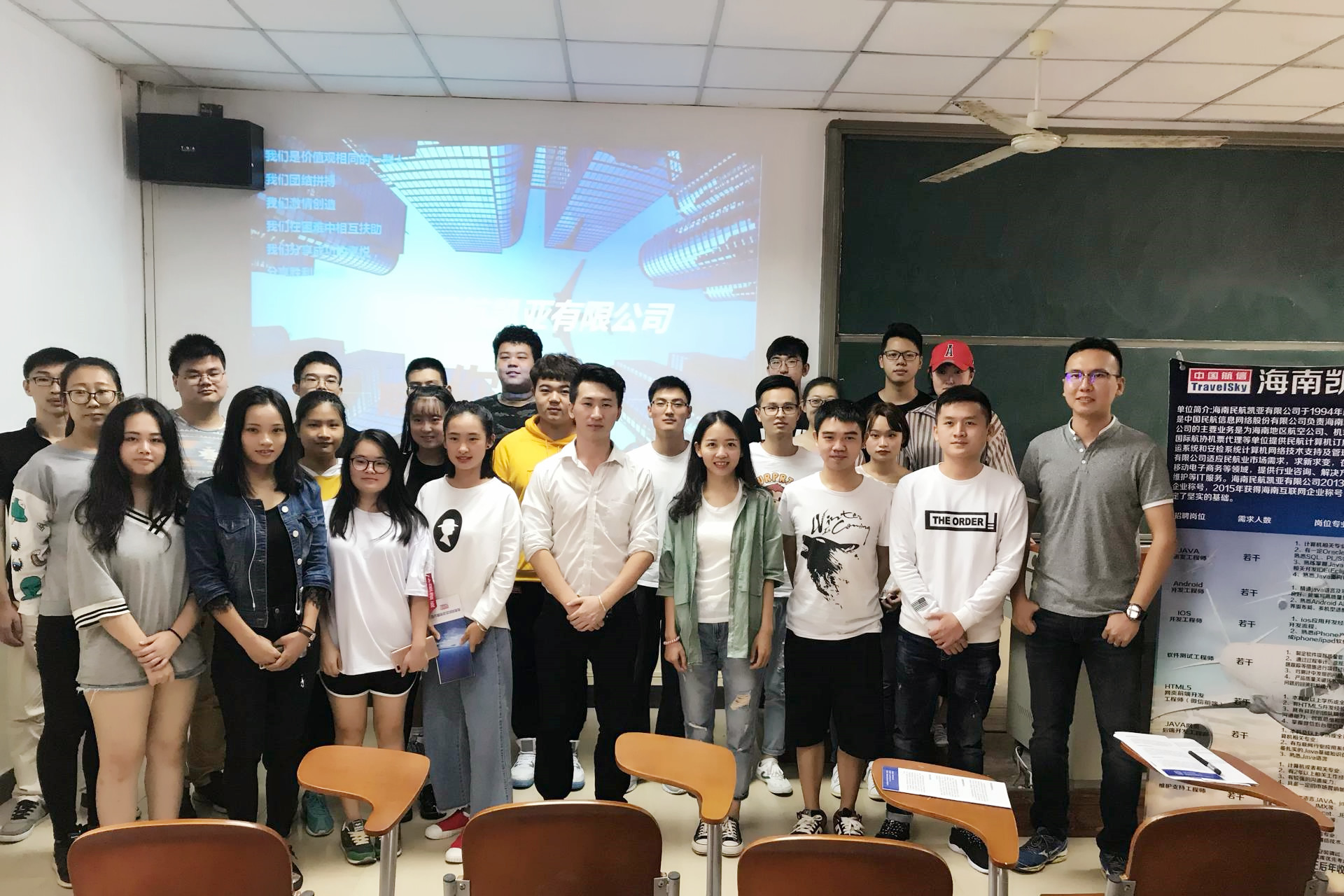 11月24日下午2点20分在书新四号楼4西101教室,海南民航凯亚有限公司来我院举办专场招聘会。招聘的对象主要为2018届毕业生,海南民航凯亚有限公司人力资源部经理张馨、数据部门技术经理成杰、 资深技术专家王兆书、b2c部门产品经理孔得齐、我院思想导师彭婷、14级部分毕业生以及一些低年级同学参加和旁听了此次招聘会。