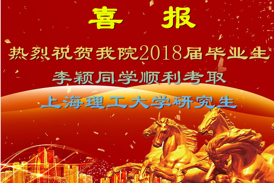 经过一年多的努力和坚持,我院计算机科学与技术(网络工程)1401班李颖同学顺利考取上海理工大学研究生。