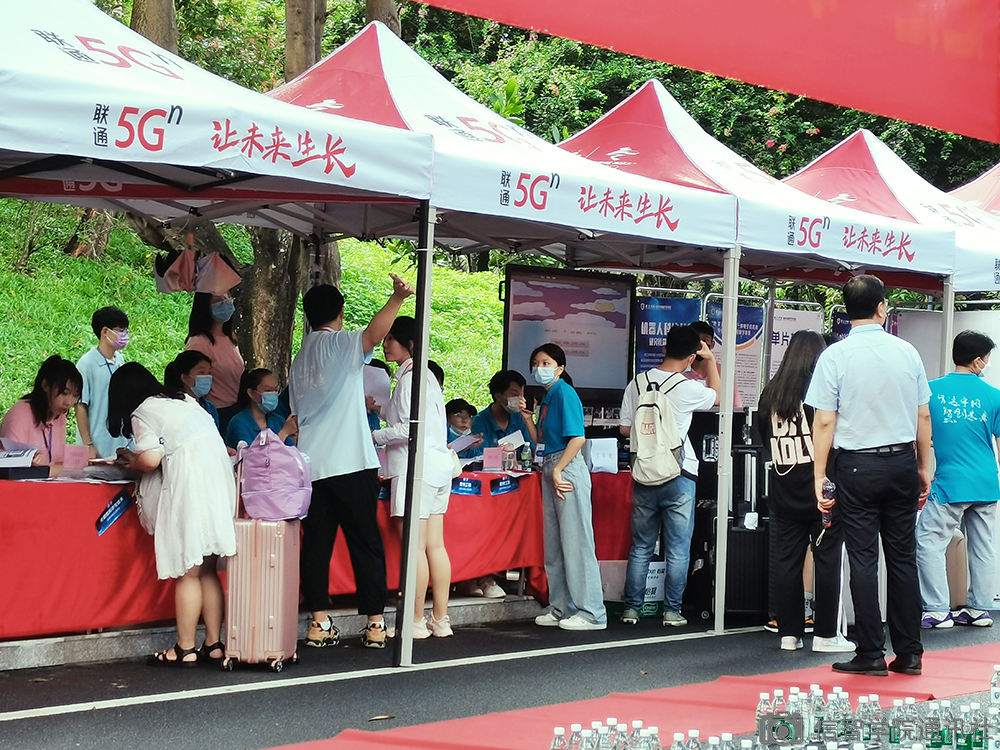过了白鹭溪,校道对面就是众多二级学院接待新生的“根据地”有的学院走浪漫路线,漫天蓝白气球洋溢着青春气息、有的学院走创意路线、学长学姐齐上阵带着新生玩游戏让新生们更快地融入到集体、有得学院特意为新生编排了节目、更有得学院发挥专业特色,一展歌喉。白鹭溪旁的这条校道正“百花齐放”,学长学姐以及各学院的工作人员们正用自己特有地方式欢迎着新生。
