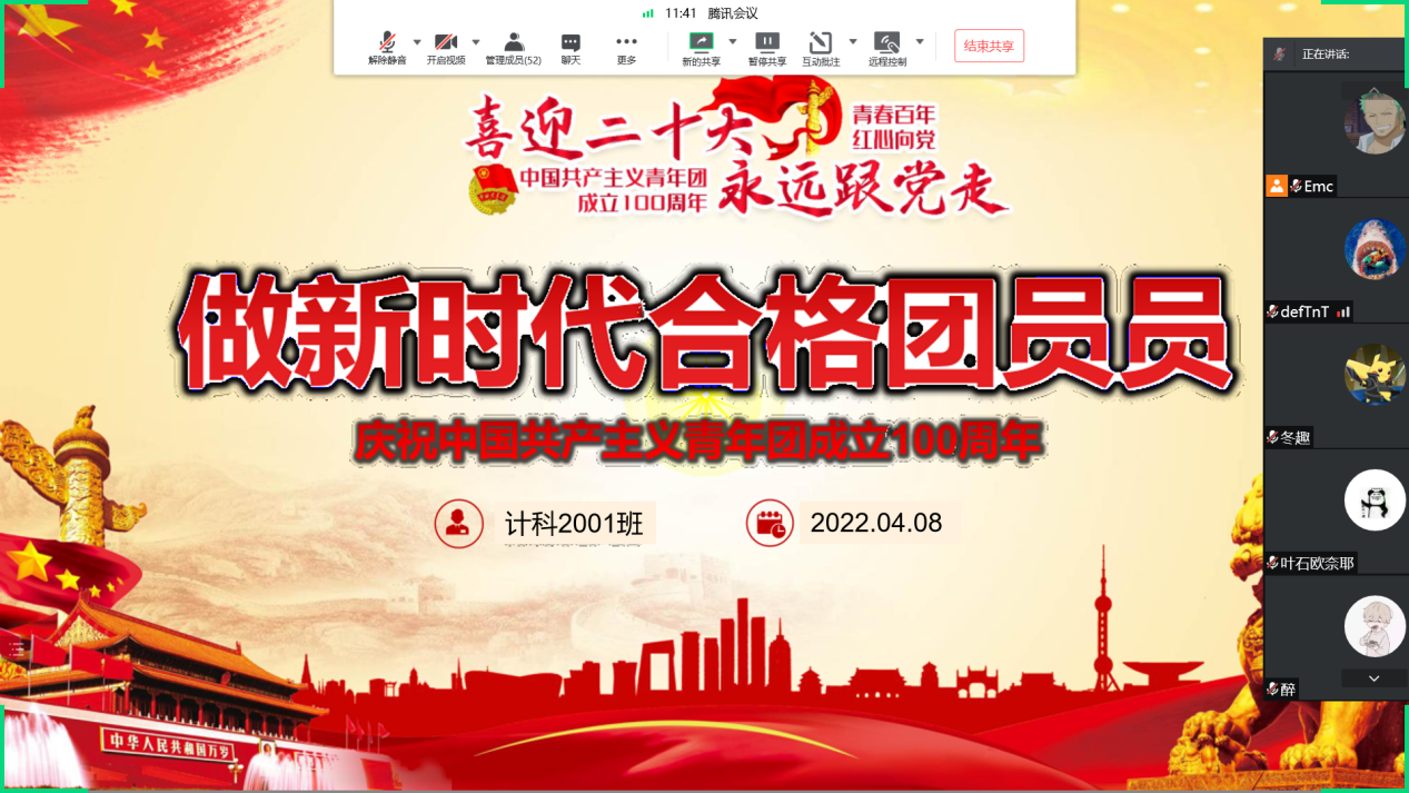 信息与智能工程学院计科2001班于4月8日下午召开以“做新时代的合格团员”为主题的线上团日活动。