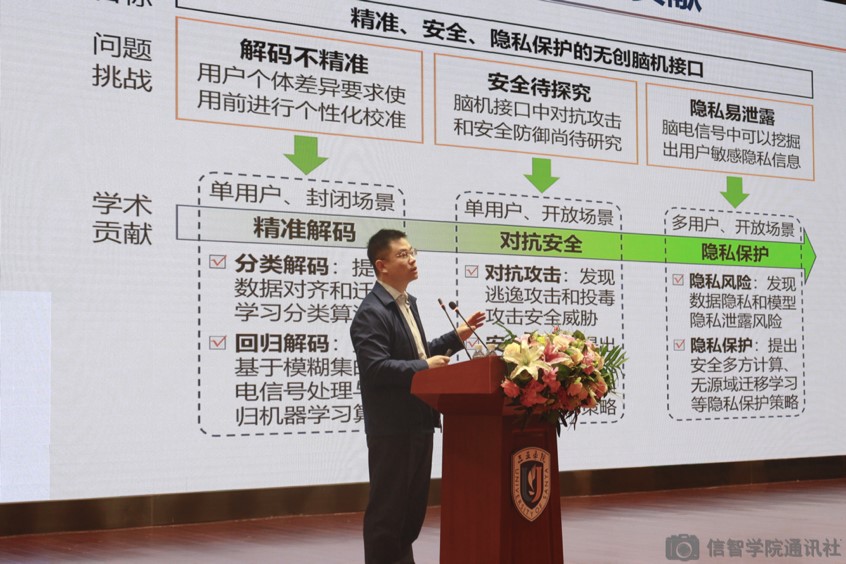 随后,伍冬睿教授以无创脑机接口的应用为切入点,指出其研究目标、问题挑战、学术贡献,进而引出精准解码。