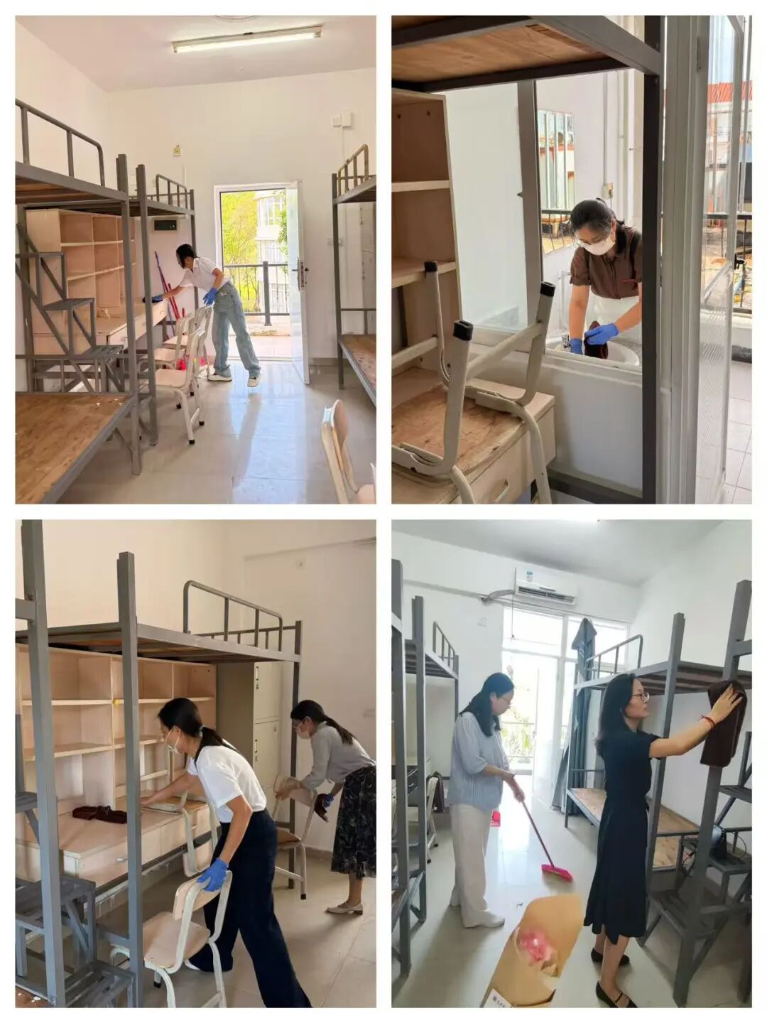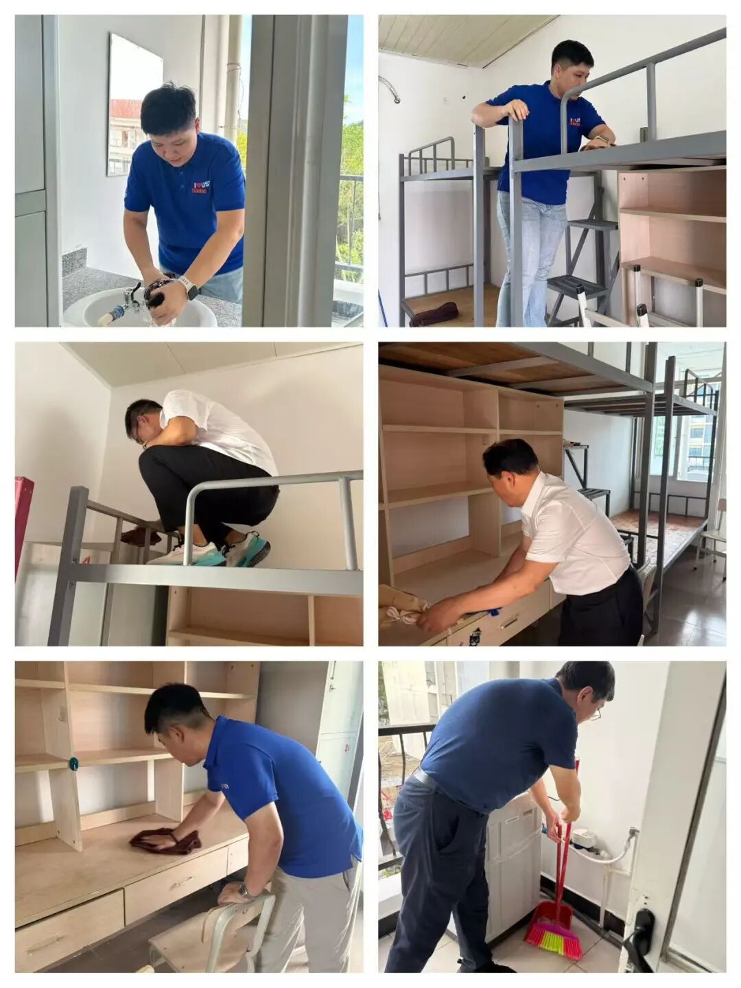 为让新生踏入寝室时感受到家的温馨与整洁,排查工作结束后,全体教师们迅速行动起来,主动拿起扫帚、拖把、抹布等工具,分工协作、默契配合。大家弯腰清扫地面的每一处灰尘,仔细擦拭桌椅、窗台的污渍,认真清理卫生间的卫生死角,不放过任何细节。经过一番细致打扫,原本略显杂乱的寝室变得窗明几净、物品摆放整齐。信息与智能工程学院的教师们用实际行动践行初心使命,以干净整洁的住宿环境,为新生们送上入学的第一份温暖,用责任与担当为2025级新生的大学生活保驾护航。