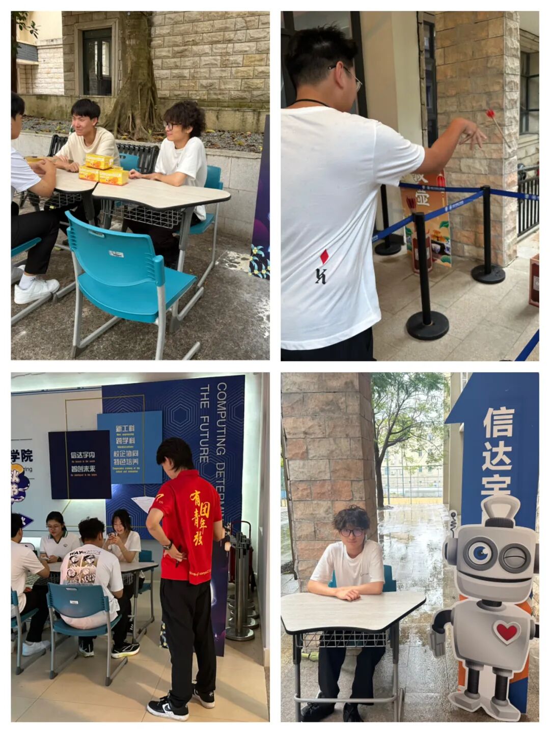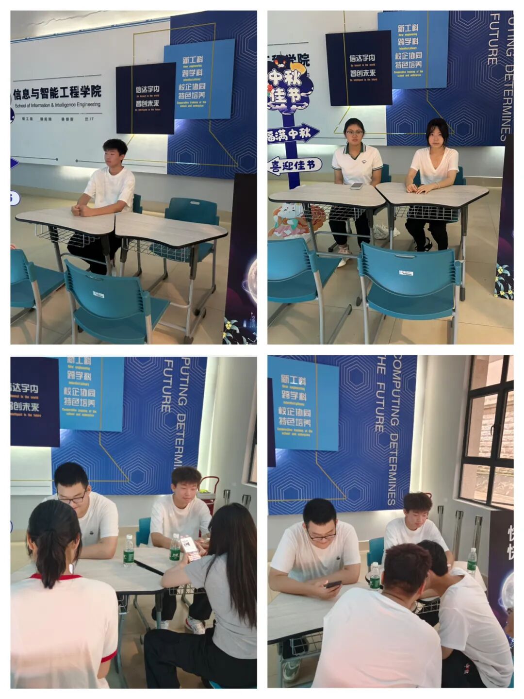 信息与智能工程学院在书新4号楼一楼正门热闹开启“AI同行,同心同悦共度中秋”欢度中秋活动,以科技为笔、文化为墨,为全校师生打造了一场兼具传统韵味与智能体验的节日盛宴,让这个中秋既“有料”又“有趣”。