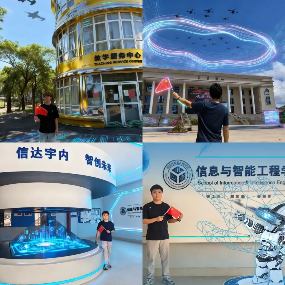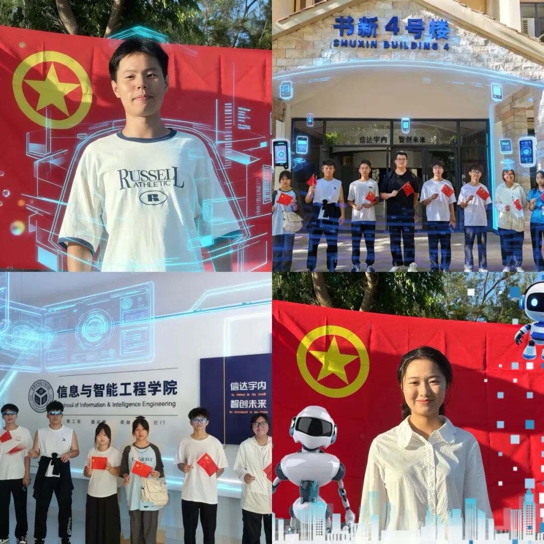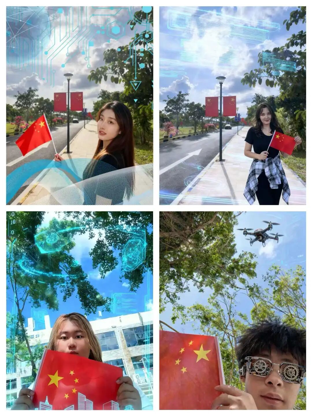 信息与智能工程学院十一国庆期间举行了“红色影像,AI 智创赋能” 国庆主题共创实践活动。学院的同学们在校园里用镜头捕捉心中最美 “中国红”,以青春视角献礼祖国华诞。