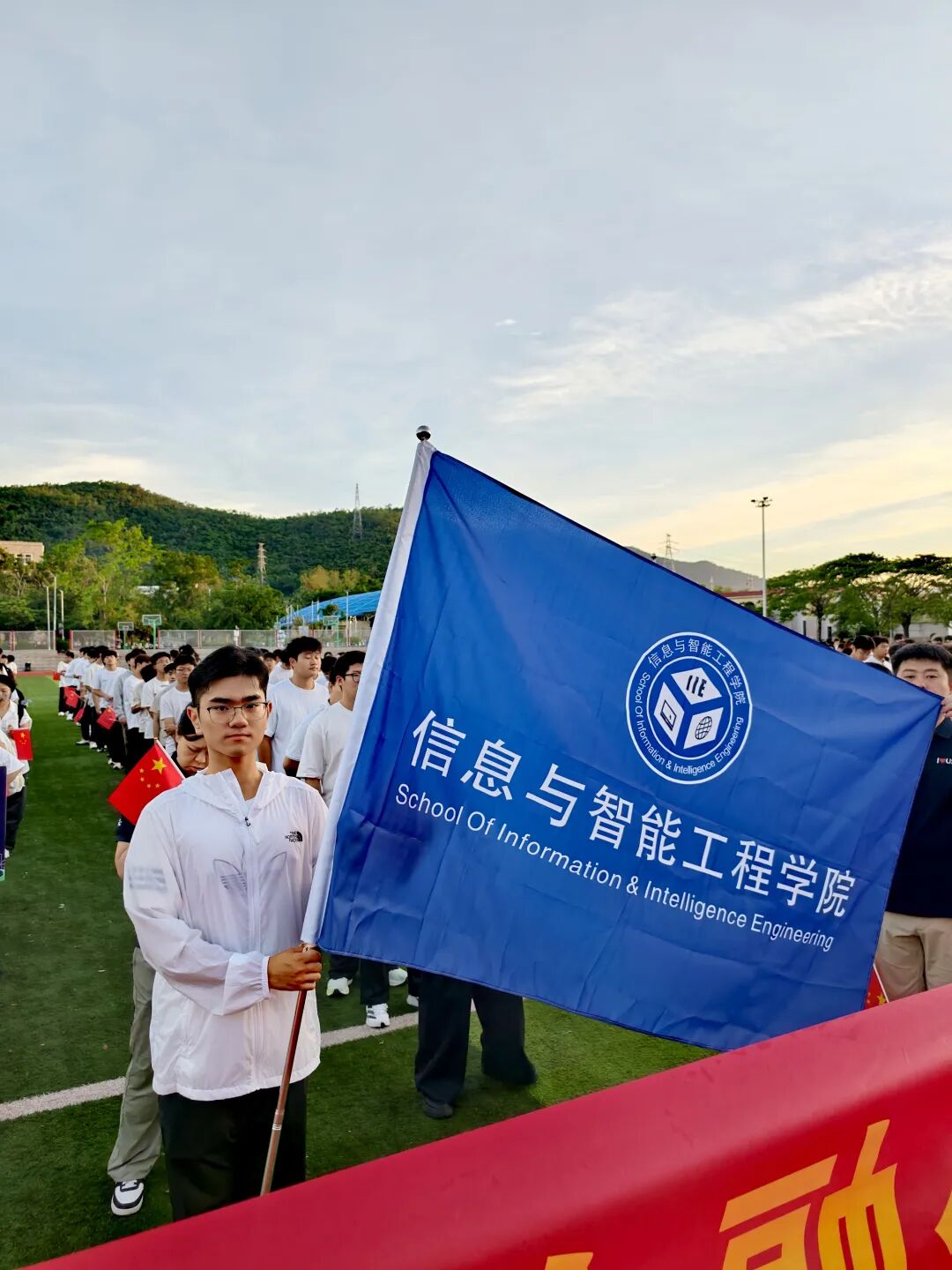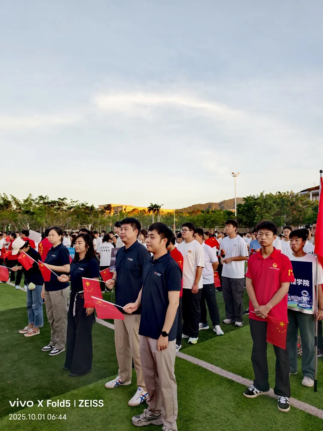 2025年10月1日,在中华人民共和国迎来又一个生日的庄严时刻,信息与智能工程学院的思想导师们与2025级新生代表齐聚学院操场,共同参加升国旗仪式。这场以“弘扬爱国主义精神,强化集体主义观念”为核心的活动,不仅是对祖国母亲的深情告白,更成为一堂浸润心灵的爱国主义教育实践课。