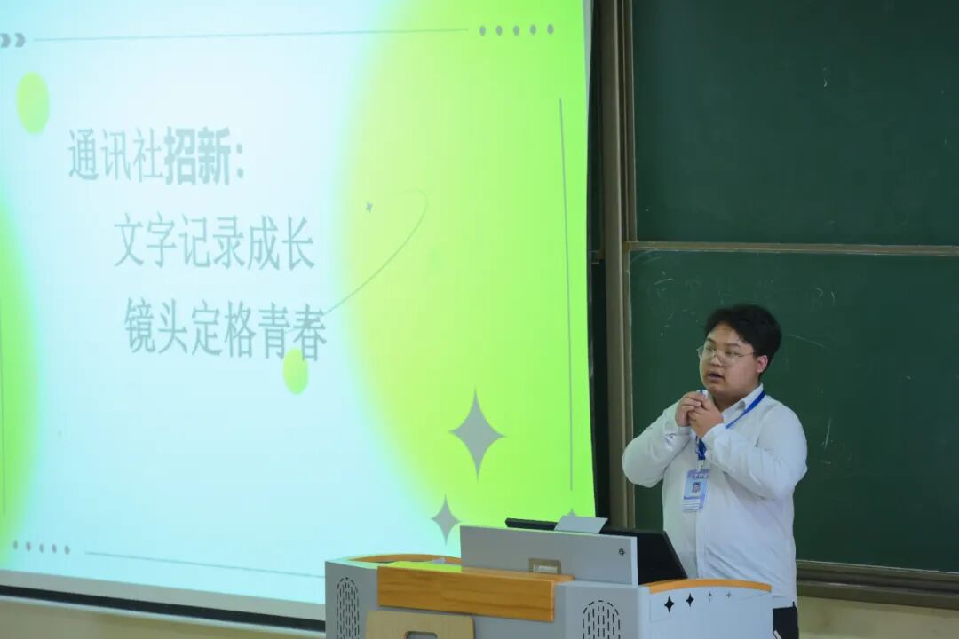 本次进行宣讲的是学院青团委员会、学院学生会和学院通讯社。学院学生组织各位负责人为2025级新生们展现出轻松活泼的一面,利用幽默风趣的发言,为新同学们提供了实用且贴心的建议,各位负责人通过宣讲进一步拉近了与新生们的距离。