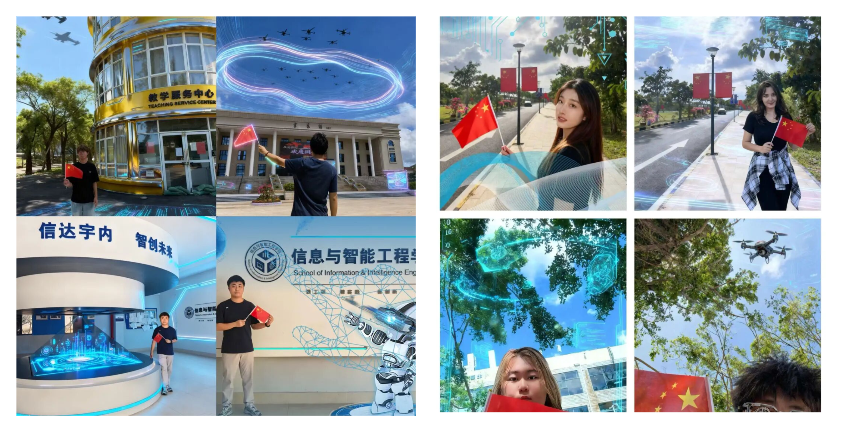 信息与智能工程学院十一国庆期间举行了“红色影像,AI 智创赋能”国庆主题共创实践活动。学院的同学们在校园里用镜头捕捉心中最美“中国红”,以青春视角献礼祖国华诞。