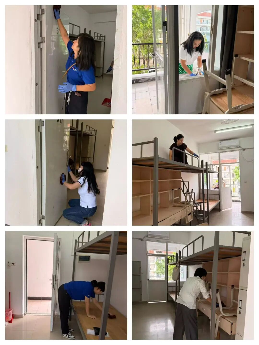 为让新生踏入寝室时感受到家的温馨与整洁,排查工作结束后,全体教师们迅速行动起来,主动拿起扫帚、拖把、抹布等工具,分工协作、默契配合。大家弯腰清扫地面的每一处灰尘,仔细擦拭桌椅、窗台的污渍,认真清理卫生间的卫生死角,不放过任何细节。经过一番细致打扫,原本略显杂乱的寝室变得窗明几净、物品摆放整齐。信息与智能工程学院的教师们用实际行动践行初心使命,以干净整洁的住宿环境,为新生们送上入学的第一份温暖,用责任与担当为2025级新生的大学生活保驾护航。