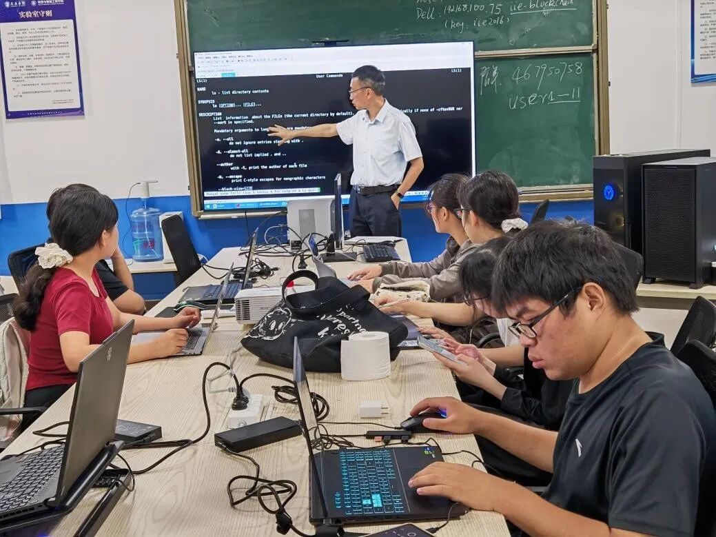 在课程现场,杨教授手把手教学,指导同学们使用Xshell这一常用的远程连接工具,连接实验室服务器,完成从登录、目录导航、文件创建与编辑,到权限管理等一整套操作流程。课程过程中,同学们积极参与,踊跃提问,课堂气氛热烈。杨明教授耐心解答每一个问题,并鼓励同学们大胆尝试、勇于探索。他强调,学习Linux不仅是学习一种工具,更是培养计算思维和解决问题能力的过程。通过亲手操作,同学们不仅掌握了基本的Shell命令,更对Linux系统的文件结构、用户权限、进程管理等核心概念有了初步认识。