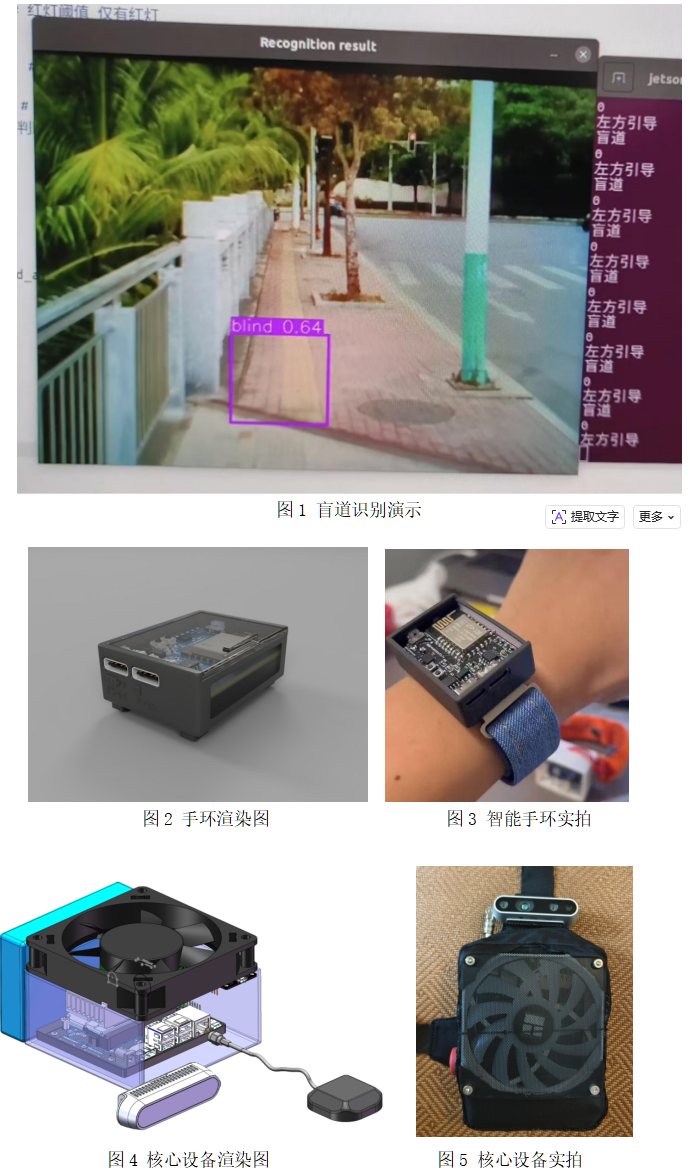 1.多维感知与实时反馈:集成深度相机和边缘计算技术,实时识别悬空障碍、红绿灯、断续盲道等环境信息,确保快速处理与反馈。