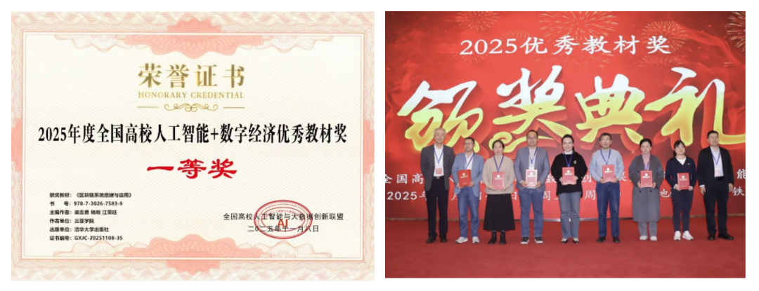 这个奖项的获得,既是对我院教师在区块链领域教材编写实力的高度肯定,也彰显了我院在新兴交叉学科教育教学创新方面的突出成果。未来,我院将继续秉持创新发展理念,鼓励教师深耕学科领域,为人才培养和产业发展贡献更多智慧与力量。