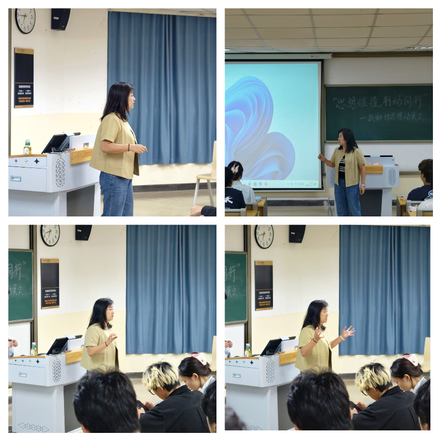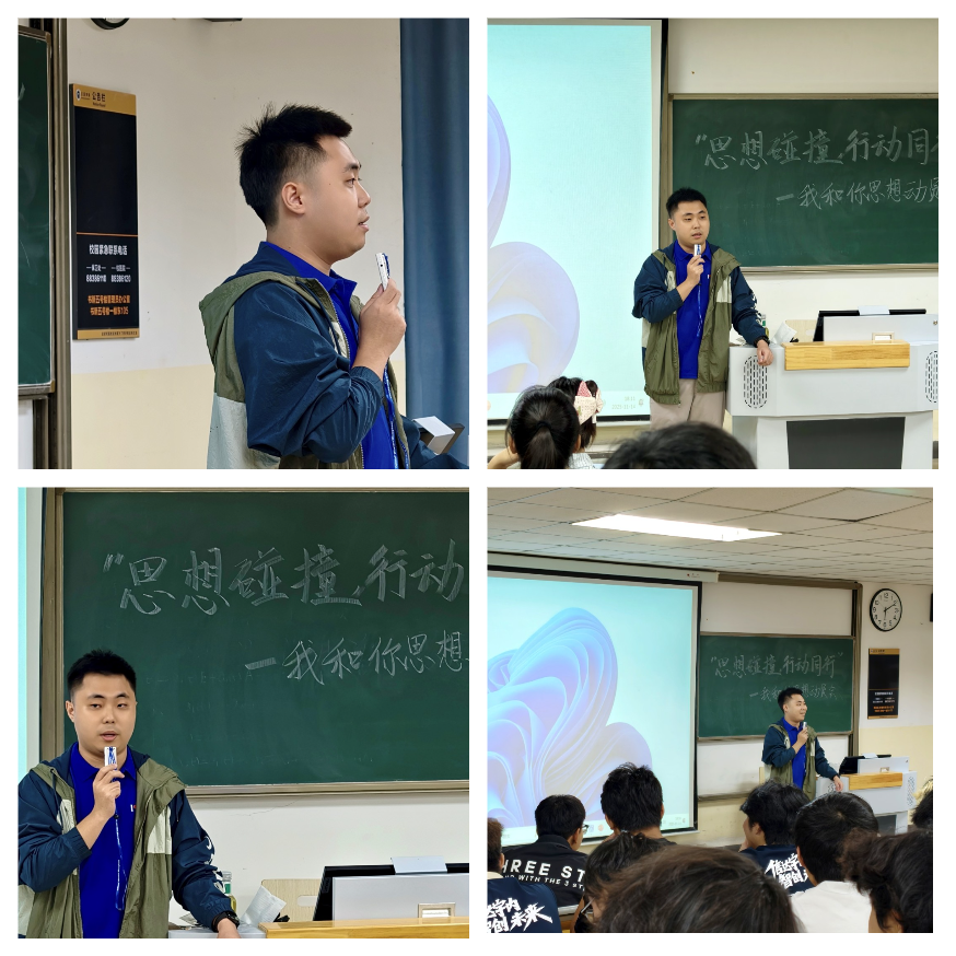 2025年11月14日18:00,新生思想导师韩钰定在5西203对参与活动的2025级同学进行思想动员。他指出,比赛重在参与、贵在真诚,“我和你”传递的是理解、包容与共鸣。他鼓励同学们放下顾虑,勇敢登台,用真实的情感打动观众,用团队协作展现风采。会议期间,与会人员共同观看了往期“我和你”赛事的精彩回顾视频。通过视频,他强调:“不是只有专业选手才配站上舞台,每一个真诚的表达都值得被听见。”