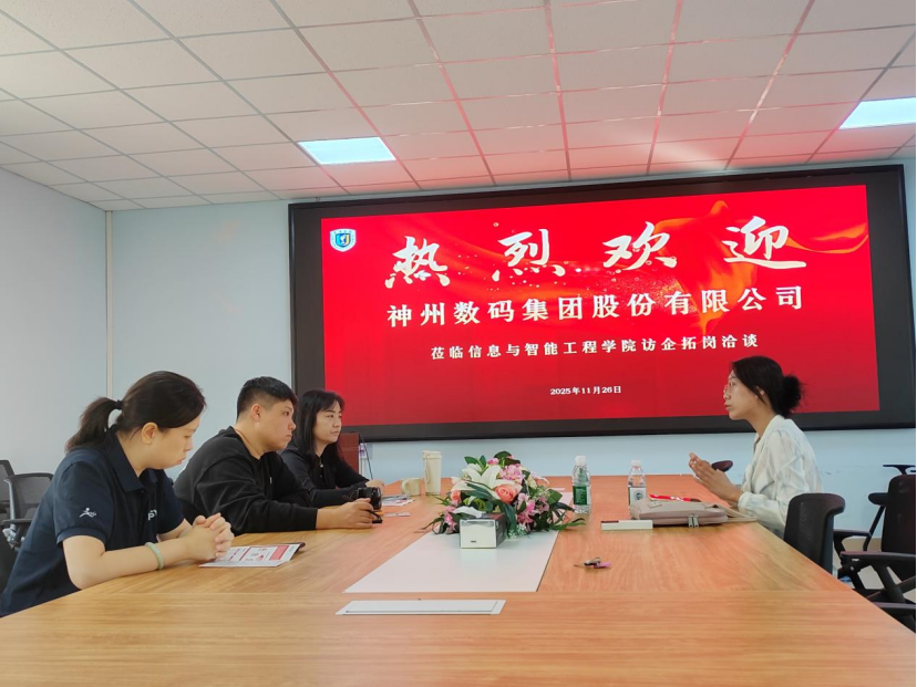 为进一步深化产教融合,拓宽学生实习与就业渠道,推动校企合作向更深层次、更广领域迈进,2025年11月26日上午8点30分,信息与智能工程学院领导班子接待了神州数码股份有限公司安福业务拓展经理(南区安服负责人)黄海莲经理一行来访。学院党总支副书记尹娜、团委副书记石玲、就业专职思想导师滕颖慧热情接待并参与洽谈,双方围绕大型赛事网络安全技术保障、网络安全方向人才培养、校企共育、产教融合、实习基地建立等合作事项展开了深入且富有成效的交流
