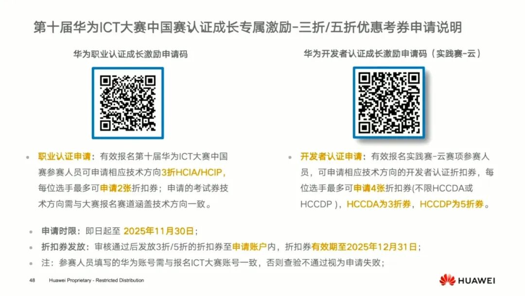 后续,陈老师进一步分析了华为认证在数通、安全、云计算、人工智能等核心方向的技术优势,强调其课程设计与真实产业需求紧密接轨,能有效帮助学生构建解决复杂工程问题的能力。这正是参与华为ICT大赛的坚实基石。他对大赛的创新赛、实践赛等各赛道进行了详细介绍,包括赛事结构及赛程安排。逐个阐明各赛道对能力要求和考察方向,并现场演示华为人才在线官网的报名流程。
