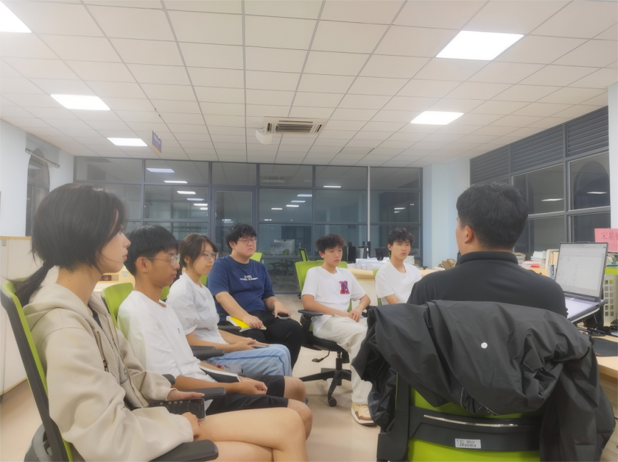 导学会中,宋显睿老师通过“一对一”交流与小组讨论结合的形式,深入了解6名新生的学习基础与个人兴趣。发现新生兴趣虽各有侧重——涵盖人工智能应用开发、智能数据分析、人机交互设计等方向,却也均与AI行业主流场景高度适配;同时,新生们也提出了“如何平衡基础学习与AI技能实践”、“哪些课程对就业更关键”等困惑。