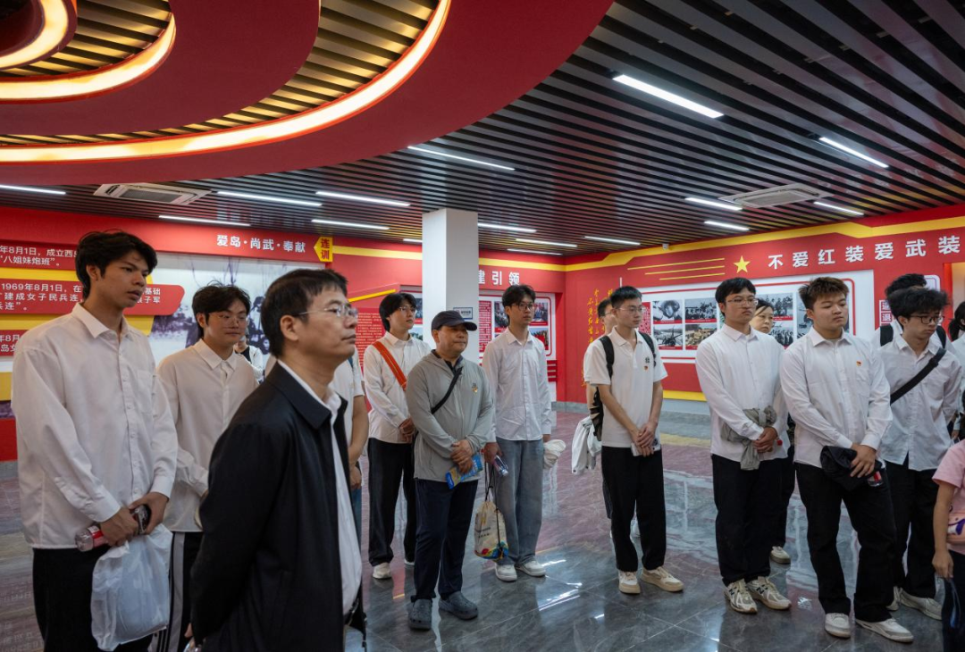 活动当日晨光和煦,师生们满怀崇敬抵达西岛。登岛后,队伍整齐集结,在讲解员的引领下步入西岛女子民兵连纪念馆。馆内历史气息厚重,陈旧枪械、泛黄书信、珍贵照片等实物展品,配以详实的文献与生动的场景复原,鲜活再现了女民兵们扎根海岛、戍守海防、无私奉献的峥嵘岁月。从艰苦卓绝的守岛历程,到巾帼不让须眉的担当豪情,她们用青春与热血书写的奋斗篇章,深深感染了在场师生。大家驻足细观、凝神聆听,不时交流体会,在重温红色历史中感悟革命传统,在回顾奋斗足迹中坚定理想信念。随后,全体师生在纪念馆前整齐列队,庄严合影,将这份对先辈的敬仰与纪念永恒定格。