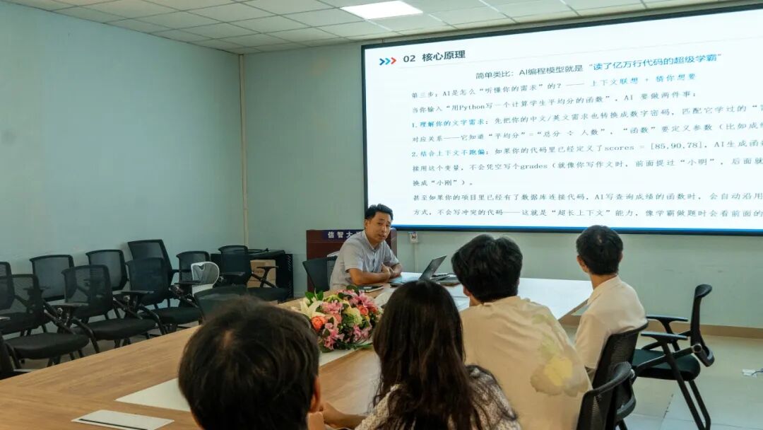 讲座内容主要围绕AI编程大模型的原理、行业变革及主流工具对比等核心议题展开。闫吉府老师将AI编程模型形象地比喻为“熟读亿万行代码的超级学霸”,通过浅显易懂的案例,详细解析了其工作原理:首先将代码转化为“数字密码”(即向量表示)以实现理解,再通过“海量刷题(预训练)+专项补课(微调)”的方式学会编写代码。如今,AI编程模型更具备了“举一反三”的能力,能够直接基于UI设计图生成代码,并智能修复程序中的bug。