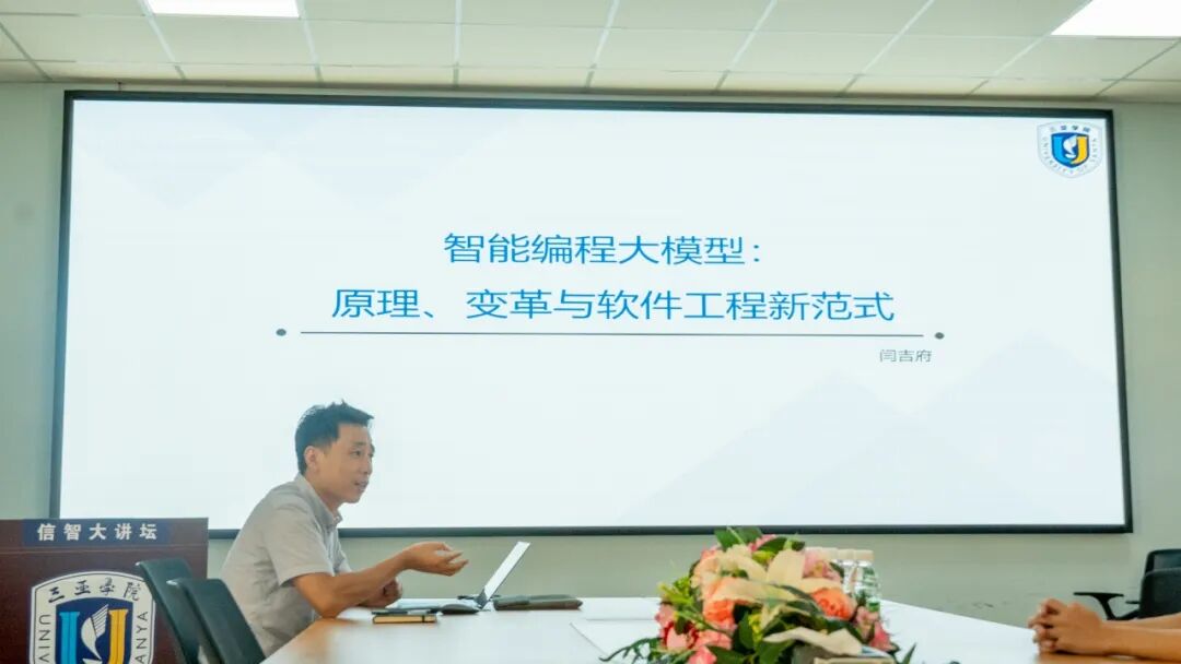 2025年11月25日16:00,信息与智能工程学院举办了一场以“软件工程3.0:新范式基础,理论与变革”为主题的专业讲座,由闫吉府老师担任主讲人。