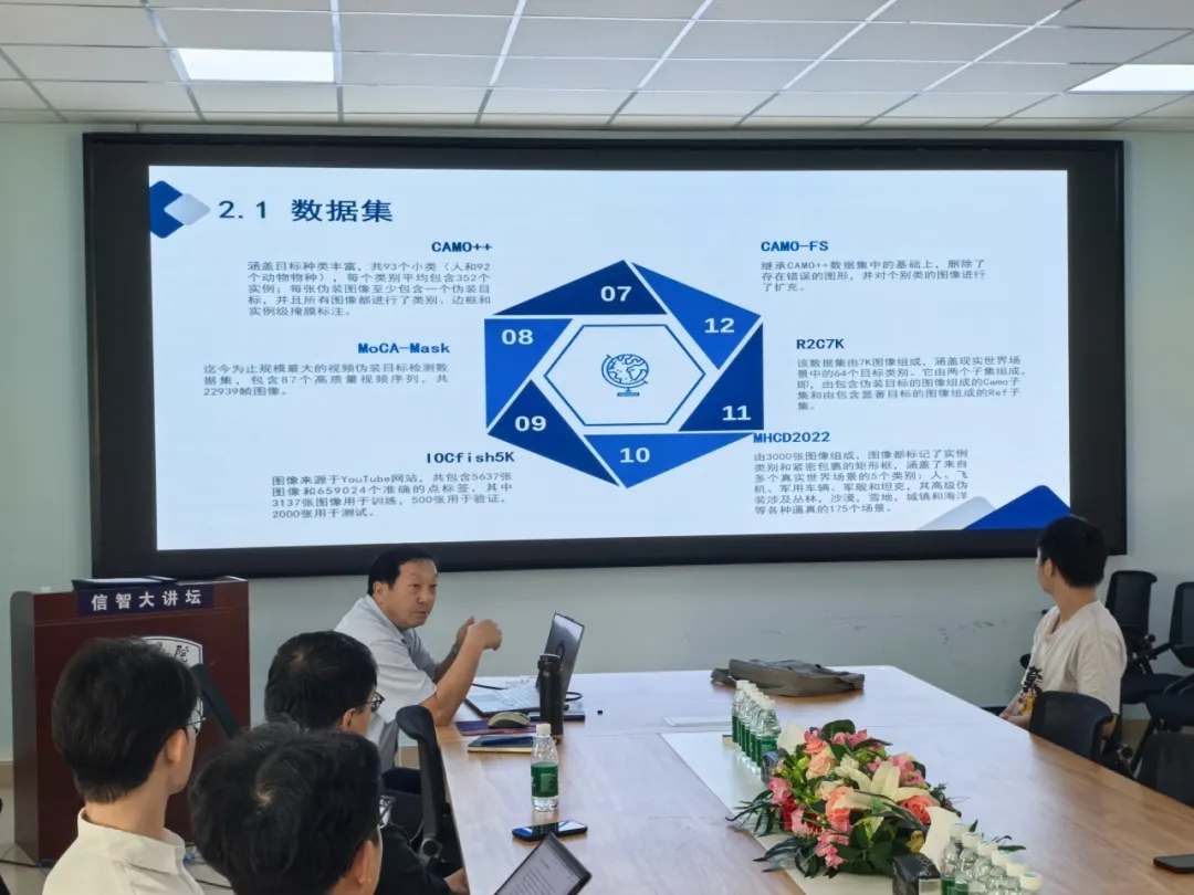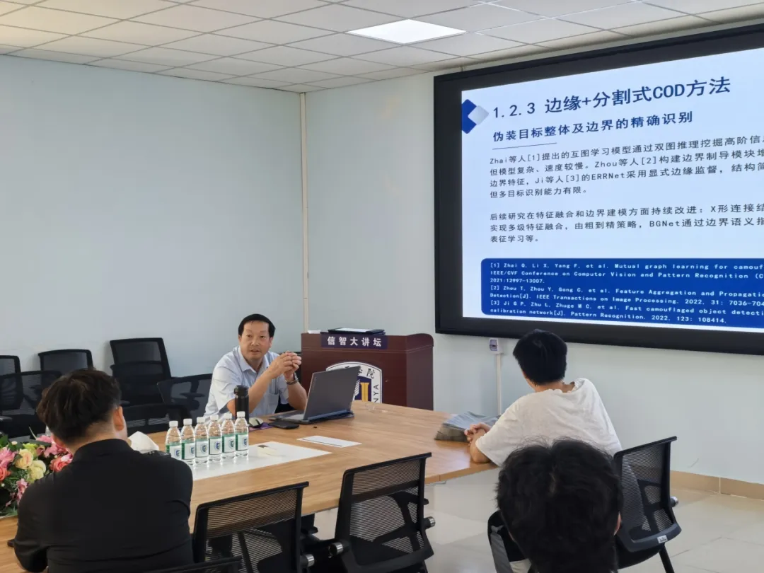 2025年12月3日16:00,信息与智能工程学院的“信智讲座”系列学术活动如期举行。本次讲座特邀王春平教授担任主讲人,以“基于深度学习的伪装目标检测研究进展”为主题,为师生带来了一场内容前沿、视角开阔的学术报告。讲座于书新4号楼学院会议室顺利召开,吸引了众多师生到场聆听。
