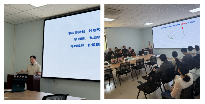 在会议现场,改革方案通过“计划经济”与“市场经济”的生动比喻,深入浅出地解析了机制变革的核心思想:传统的本科导师制通过“学院分配”实现了师生全覆盖,类似于“计划经济”对基础的保障;而新推行的“项目制”则如同“市场经济”,开放包含产业技术问题、社会服务项目、竞赛等实际问题以及未来技术规划、自主课题等虚拟问题的项目库,让学生自主选择参与;同时,“导师集群”模式构建了“教师+研究生+本科生”的灵活协作团队,围绕项目进行合作,打破了单一导师的资源限制,既有利于本科生培养,也有利于教师队伍的传帮代,促进年青教师的快速成长。