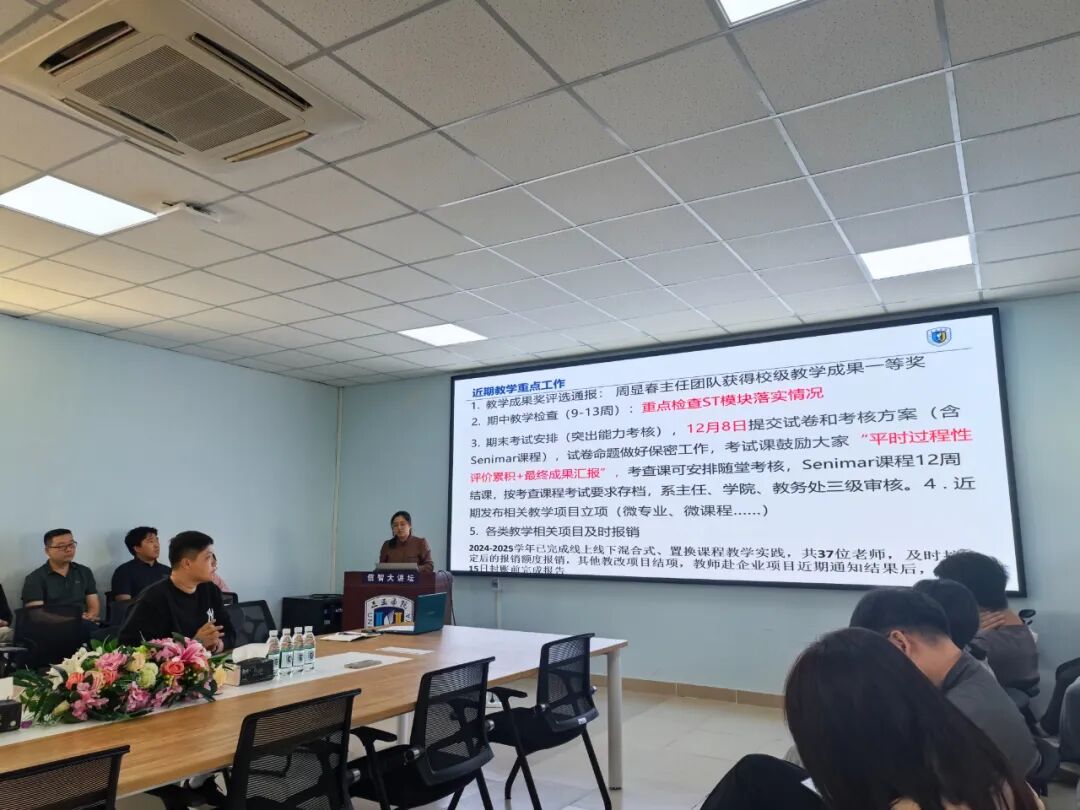 2025年11月底,三亚学院信息与智能工程学院在2025-2026学年秋季学期第四次教学研讨会“信智讲坛”上,学院院长李成名着重介绍了教育教学结构化改革推进项目。该项目制以“项目驱动+导师集群”的模式,引领传统育人机制向更加灵活、更贴近实际需求的方向转型。