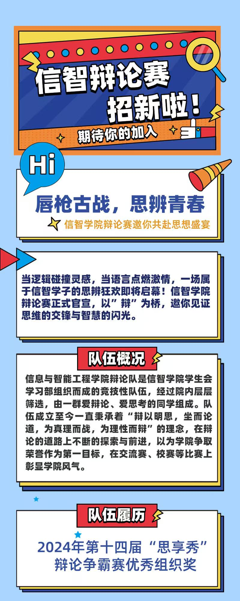 @全体同学 信息与智能工程学院辩论队招新啦,快来加入我们!