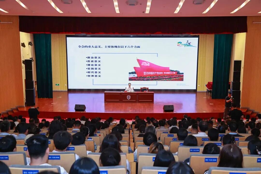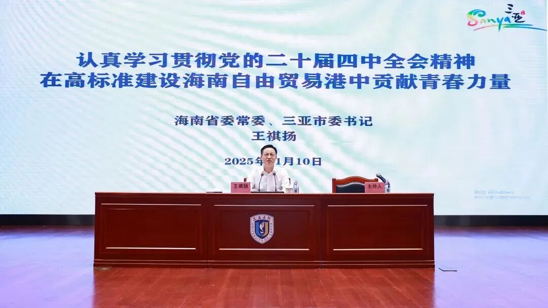 11月10日,省委常委、市委书记王祺扬以“认真学习贯彻党的二十届四中全会精神,在高标准建设海南自由贸易港中贡献青春力量”为题,在三亚学院宣讲党的二十届四中全会精神并讲授思政课。