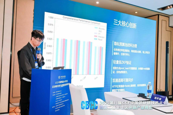 孙浩然所代表“信盾医联”团队作品《HiddenChain》直面当前医疗AI发展的“三座大山”——法律红线、数据孤岛、信任危机,创新性地将联邦学习、差分隐私、零知识证明与国产FISCO BCOS联盟链深度融合,构建了“数据不出域、计算可验证、过程可审计”的医疗数据协作新范式。该作品首创的隐私预算池闭环治理机制,实现了差分隐私消耗的链上追踪与合规审计同时引入的Groth16零知识证明技术,可在1毫秒内验证训练真实性,有效抵御模型投毒攻击。