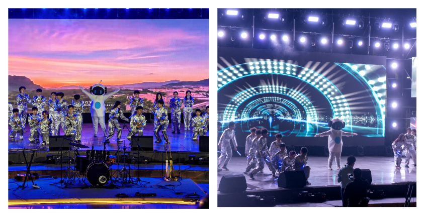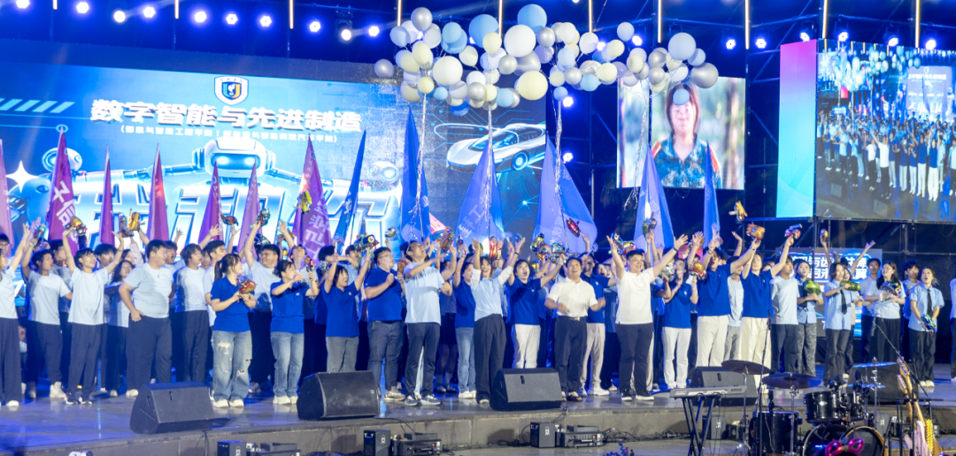同时,信息与智能工程学院通过协同共舞的形式,生动传递“向下兼容、向上创新”的产业发展理念,具象化诠释了学院“数字驱动创新、智能重构制造”的教育理念与实践路径,勾勒出人机协同、产教共育的未来蓝图。