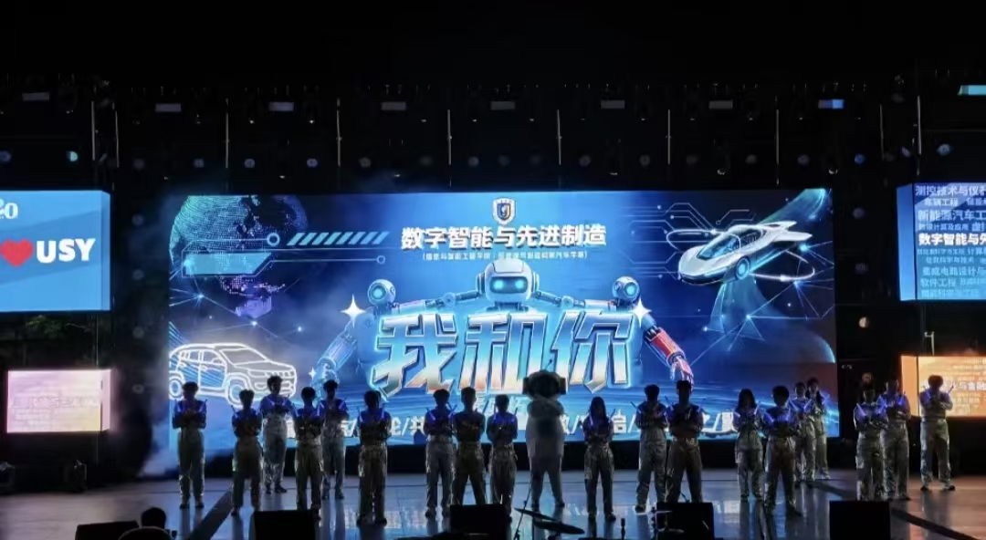 同时,信息与智能工程学院通过协同共舞的形式,生动传递“向下兼容、向上创新”的产业发展理念,具象化诠释了学院“数字驱动创新、智能重构制造”的教育理念与实践路径,勾勒出人机协同、产教共育的未来蓝图。