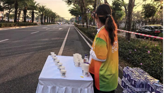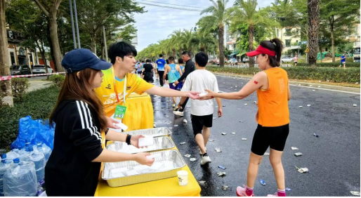 志愿者:我们采用“网格化清理”模式,将补给点划分为7个责任区,确保垃圾分类准确率达98%。韩老师带着男生搬运赛后剩余物资与帮助环卫工人清理路面垃圾;女生负责整理轻点剩余物资,高效的完成赛后工作整理。