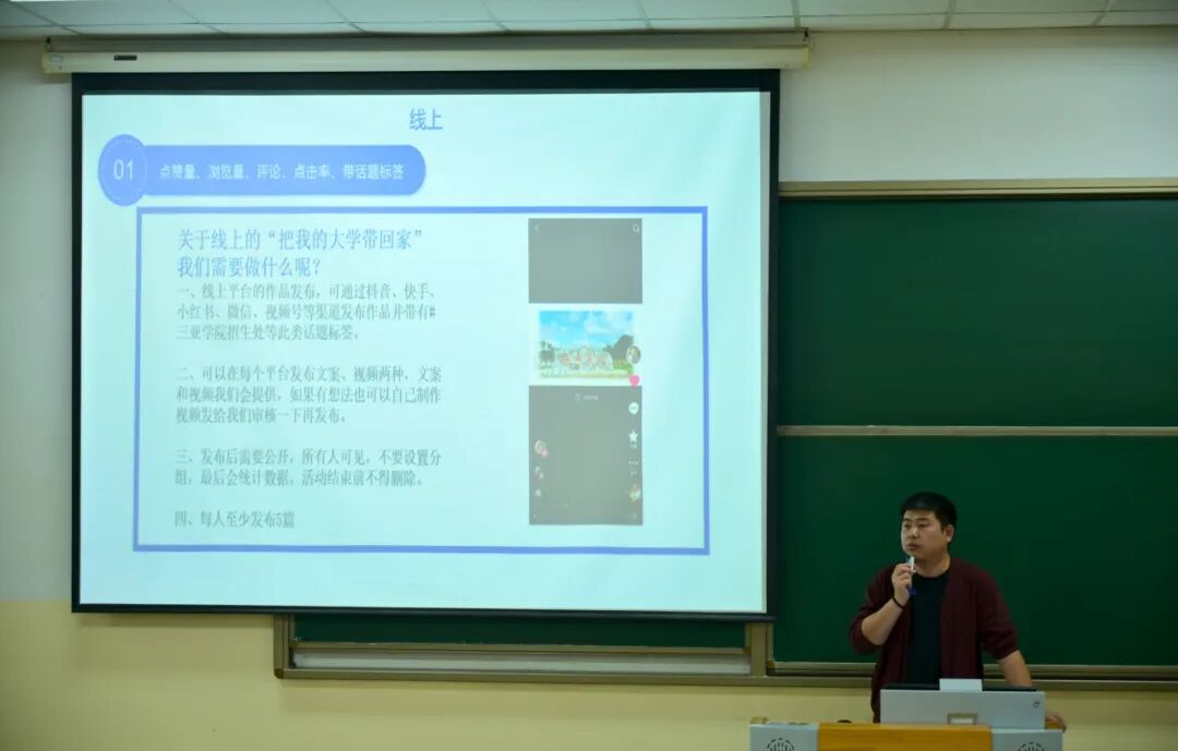 会议对“把我的大学带回家”寒假社会实践活动进行了全面部署。活动将组建专项工作团队,团队由学院专项小组负责人牵头统筹,成员涵盖大一新生、学生骨干,以及获奖学生代表、入党积极分子和党员同志。本次宣传工作采取“线上引流 + 线下落地” 双轨并行、双向发力“的模式,确保宣传实效。线上层面,要求每位团队成员充分利用微信朋友圈、抖音、小红书等社交平台,常态化发布学校及学院的宣传内容,扩大传播覆盖面。线下层面,明确每位成员至少完成一次实地宣讲任务,走进高中母校、深入班级课堂开展面对面宣讲。宣讲内容需全面涵盖学校概况、区位优势、办学成果、校园环境、生活配套设施、特色学生活动及奖助勤补政策等核心信息。