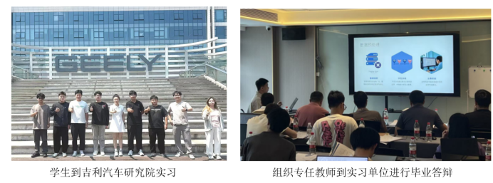 借助产业学院和实习基地平台,学生深入吉利汽车研究院等单位实习实践,学院还组织专任教师赴学生实习单位开展毕业答辩,实现学习与职场无缝衔接。