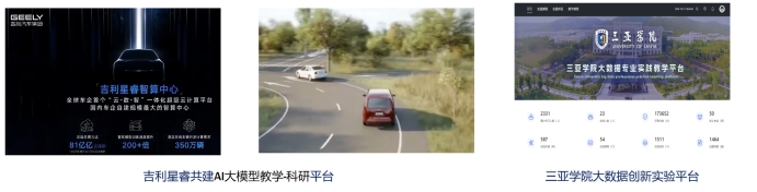在软件资源方面,学院依托芯位教育平台丰富的数字化教学资源,实现“坐在AI上的大学”新图景,还与吉利星睿共建AI大模型教学-科研平台,与头歌实践教学平台共建三亚学院大数据创新实验平台。