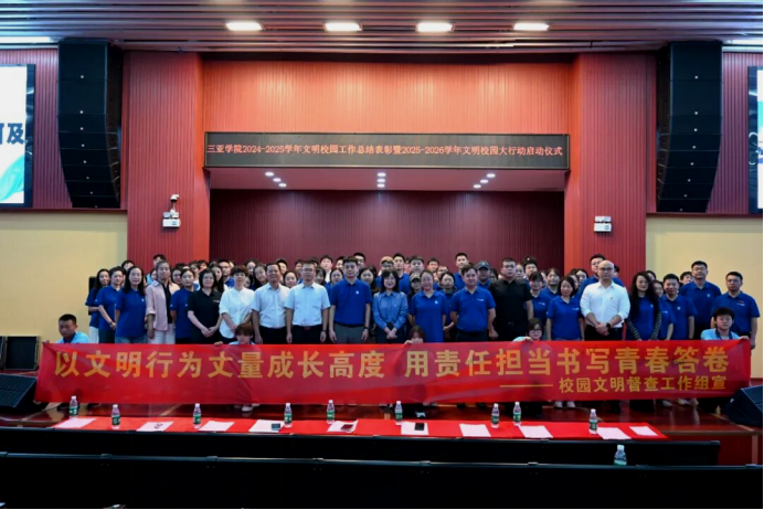 三亚学院于11月7日举办文明校园工作总结表彰暨新学年启动仪式,信息与智能工程学院凭借在校园文明、学风建设、志愿服务等领域的突出成效,荣获"文明校园先进单位"称号。学院将以此为新起点,聚焦四大文明行动:带头遵守禁烟规定,维护校园空气清新;恪守着装礼仪规范,维护公共场所风貌;严格执行禁养宠物规定,守护环境卫生;规范电动车使用停放,共建安全交通环境。学院号召全体师生从自身做起,以点滴行动共筑文明校园,持续书写文明建设新篇章。