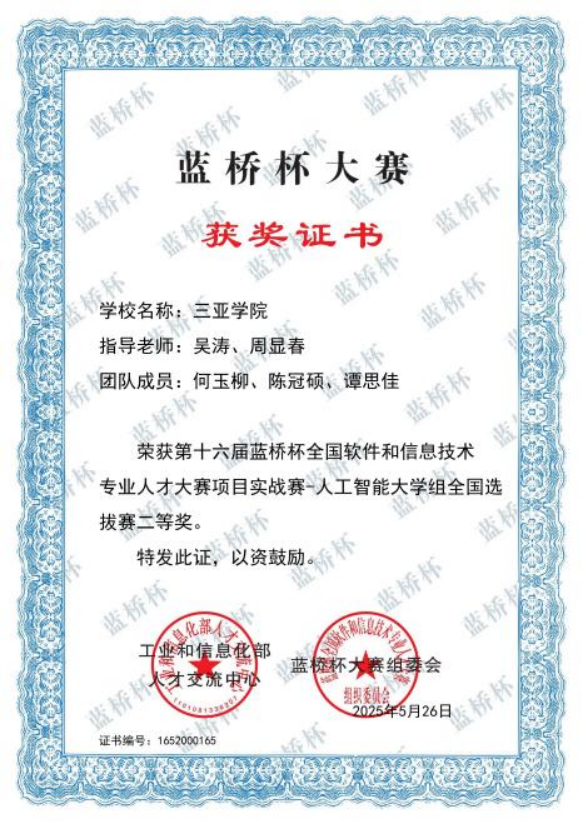 喜报!三亚学院首次征战人工智能赛道,于第十六届蓝桥杯全国大赛中斩获二等奖!