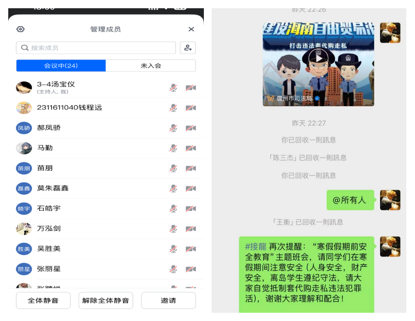 2026年1月中下旬,为切实筑牢校园反走私法治防线,强化学生守法意识,有效防范寒假期间离岛免税“套代购”等走私风险,在寒假来临前夕,信智学院思想导师老师张天锡面向所带班的学生开展了线上反走私主题宣传教育活动,为同学们送上一堂生动的法治“必修课”。 本次宣传教育活动紧扣寒假出行、消费特点,以“防范离岛免税‘套代购’走私”为核心重点,通过线上宣讲、案例解析、政策解读等形式,向同学们系统普及反走私知识。宣讲中,张天锡老师首先明确了走私行为的定义、常见类型,重点拆解了离岛免税“套代购”走私的具体表现,帮助同学们精准识别此类违法行为的隐蔽陷阱,打破“小额代购无风险”的认知误区。