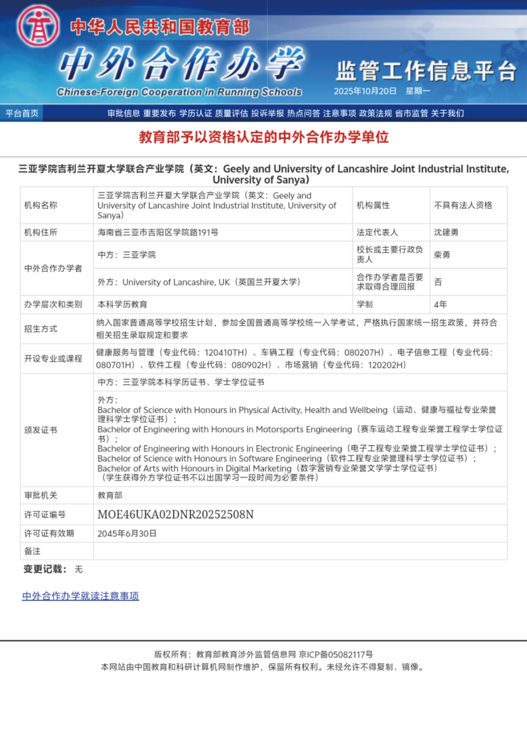 五、在学校领导下,与英国兰开夏大学联合培养软件工程专业本科生。