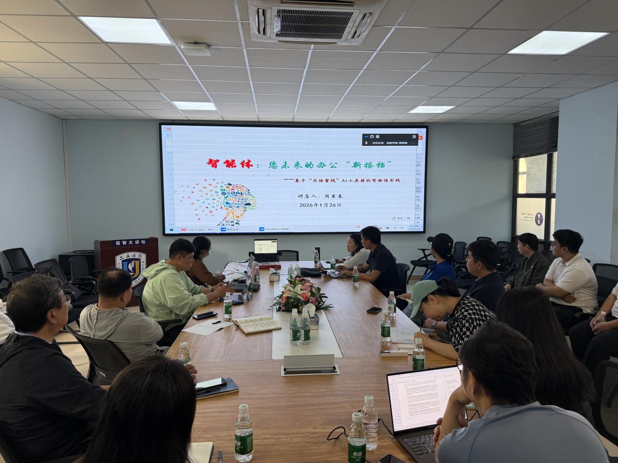 为深入贯彻落实学校关于提升行政办公效能、推动智慧校园建设的工作部署,切实提升学院行政岗人员的数字化办公能力与智能管理水平,1月26日上午,信息与智能工程学院在信智学院四楼大会议室在学校的统筹下,组织开展了“AI行政办公与智能管理”专题培训,学院全体行政岗人员、部分专业教师代表参与了本次集中线上学习。