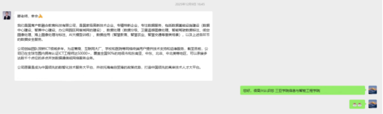 2025年12月中下旬,信息与智能工程学院与国育产教融合教育科技(海南)有限公司就数据处理、卫星遥感、AI大模型训练等联合人才培养开展深化合作交流,为校企合作落地及学生职业发展搭建沟通桥梁。