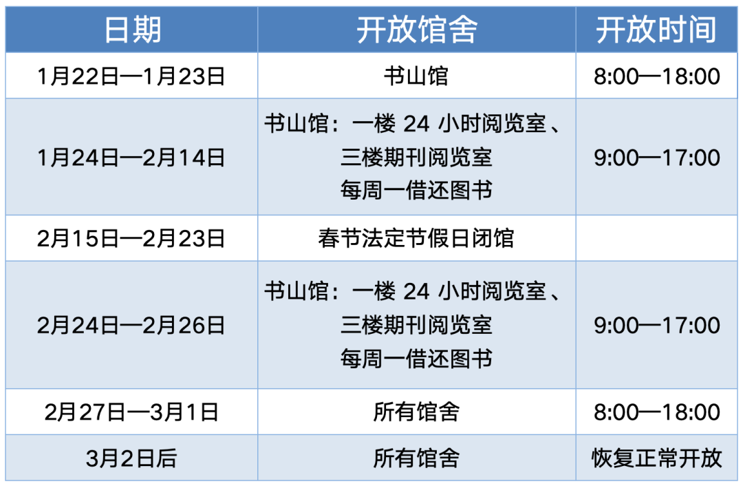 图书馆2026寒假开放时间