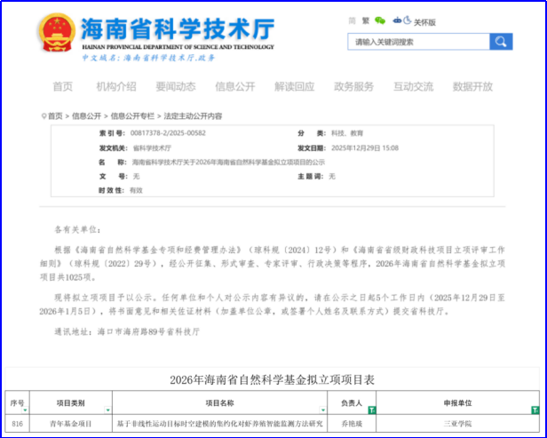 乔艳琰老师获批海南省自然科学基金项目