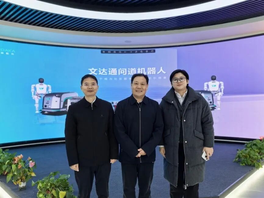 在智慧城市展示大厅,参访团深入了解了瑞源控股如何以科技重塑城市治理与社区服务。现场演示的“智慧政务大厅综合管理平台”,集成了超过2000项政务服务,实现了“一窗通办”和全流程数据溯源。由旗下企业研发的“问道”机器人和智慧物业系统,则展示了从数字政务到智能社区的垂直赋能能力。这与学院培养复合型信息人才的目标高度一致。双方可围绕智慧物联平台开发、城市数据治理分析等方向,共同设计项目制课题,为学生参与未来“数字基座”建设提供实践舞台。