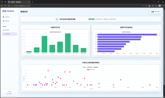 《智能手机市场销量的数据分析与可视化》则结合Flask与MySQL搭建交互式分析界面,并引入机器学习模型进行销量预测,体现“分析—预测—决策”闭环思路。
