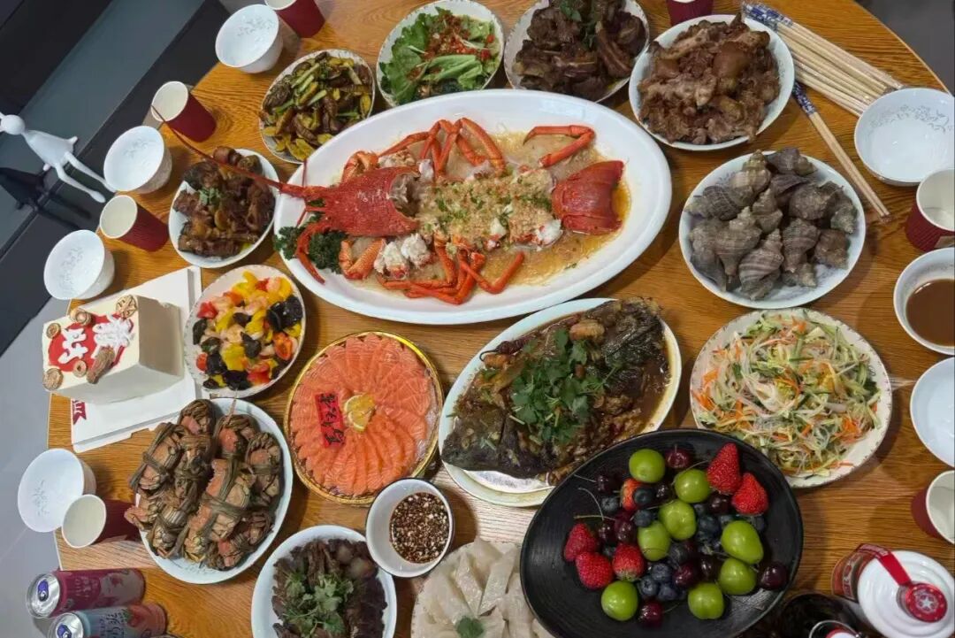 一盘盘佳肴,是家人的匠心巧思。酥嫩的扣肉裹着酱香,鲜美的鱼虾漾着清甜,每一口都是熟悉的家味,一勺都盛着团圆的欣喜。