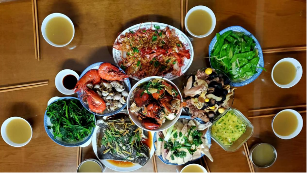 来自广东的小吴分享道:广东的年夜饭精致而丰富。清蒸石斑鱼象征富贵有余,白切鸡寓意大吉大利,盆菜更是汇聚山珍海味,象征团圆与富足。餐桌上不仅有美味佳肴,更有家人间的祝福与关怀。轻声细语中,流淌着岭南人独有的温情与从容。