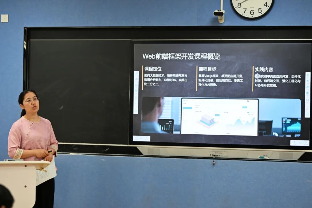 针对数字化教学资源建设,刘小飞老师重点介绍学院已建成的“理论力学国家级线上一流课程”,该课程自2017年上线以来,累计服务全国200余所高校、超6万名学生,包含15章内容、104个视频、645道习题,并依托超星平台构建思维导图与地图式知识图谱,支持个性化学习路径。此外,她还展示了AI学伴深度参与大作业的教学新模式,如“舰载机机翼折叠机构设计”项目,通过AI辅助生成设计步骤,强化学生建模能力与综合分析素养。