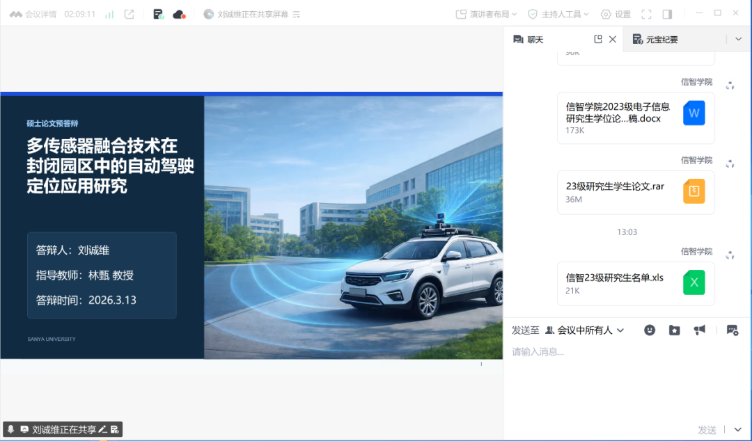为严格把控研究生学位论文质量,检测研究生专业知识综合运用、科研创新及论文撰写能力,根据三亚学院研究生培养管理规定及电子信息专业学位教指委要求,3月13日,信息与智能工程学院以线上形式顺利开展2023级电子信息研究生学位论文预答辩工作。本次预答辩分为两个小组同步进行,学院精心组建了由研究生导师组成的硕士学位论文预答辩专家组,配备专职答辩秘书,16名电子信息研究生参与本次预答辩。