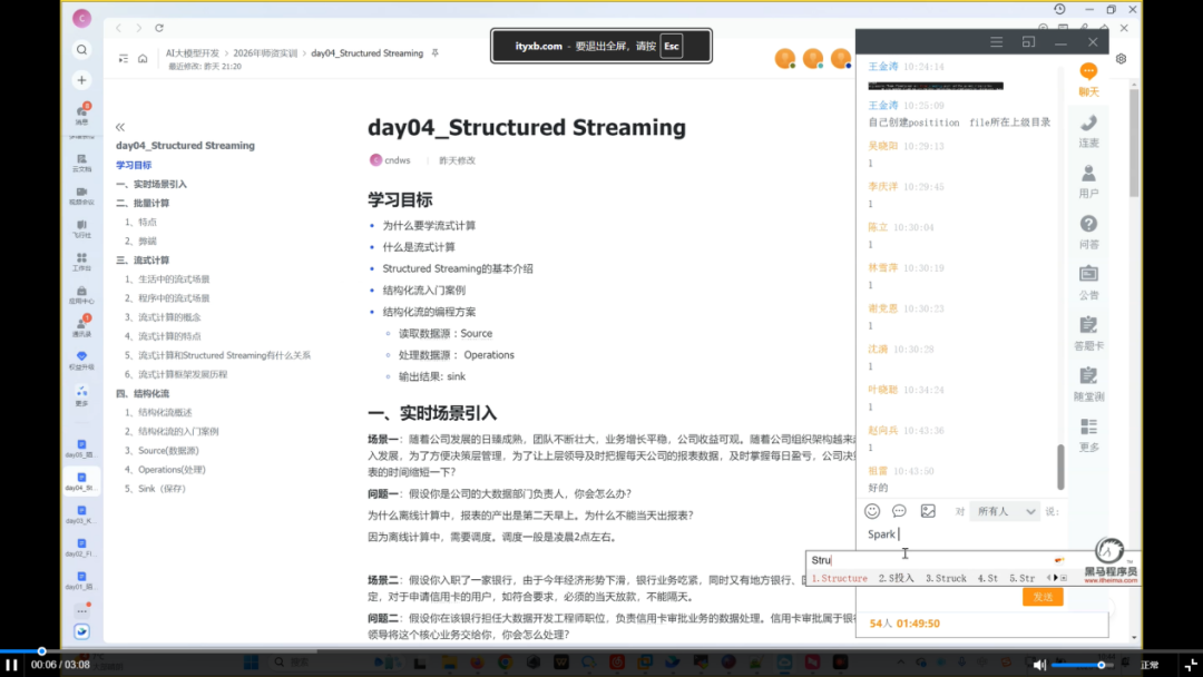 为了让技术落地到真实产业场景,培训后三天(Day03-Day05)完全基于企业级案例展开。贾东霖老师以“陌陌”社交平台的用户行为数据为模拟对象,完整地体验了大数据处理的经典流水线。