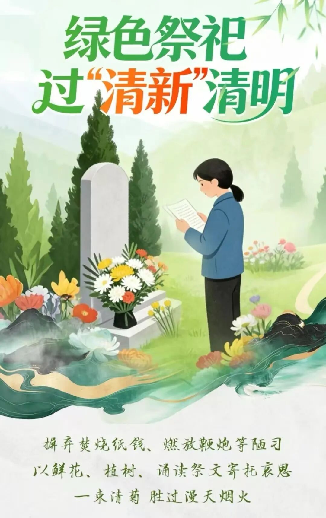 清明寄哀思,平安伴归途。安全无小事,责任记心间,让我们携起手来,文明祭扫、平安出行,在缅怀先祖、亲近自然的同时,牢牢守住安全底线,度过一个平安、文明、温馨的清明假期! 最后,祝愿大家清明安康,万事顺遂!